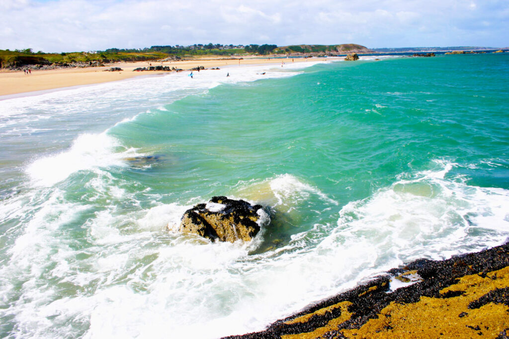 An der Bretagne findet man wilde Küstenabschnitte und romantische Buchten. Die Bretagne ist der nördlichste Teil der französischen Atlantiküste und bekannt für einmalige Felsklippen, Leuchttürme und geschützte Buchten. Wenn die Wellen mal weniger stark sind, kann man beispielsweise mit einem Neoprenanzug schon ab Mai Bodyboarden oder an einem Surfkurs teilnehmen.