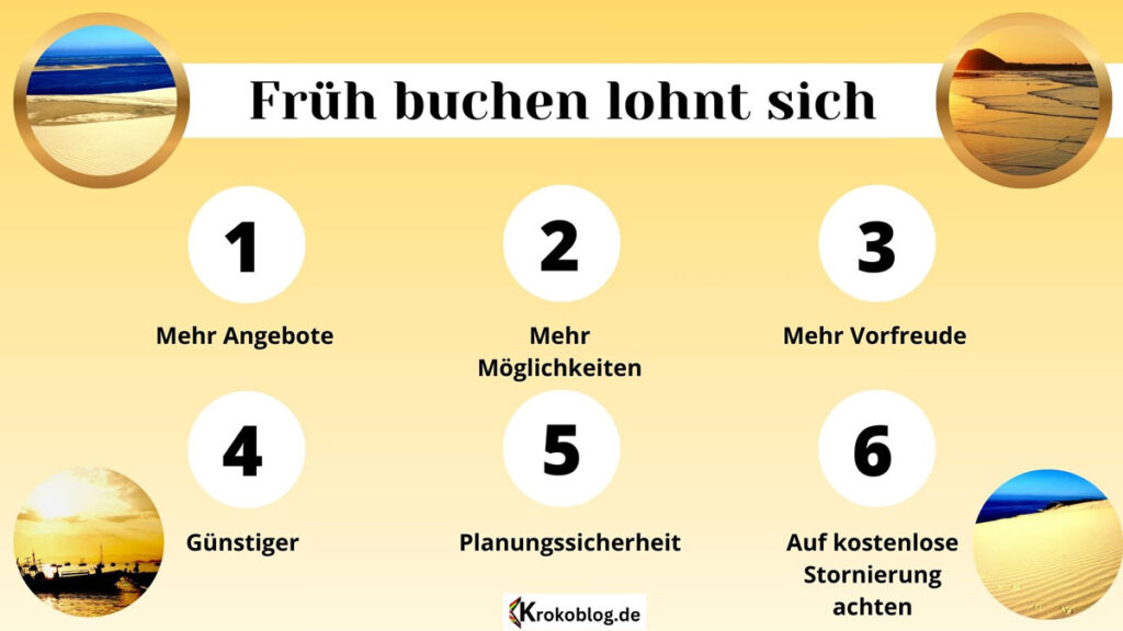 Früh buchen lohnt sich, da man dann die beste Auswahl hat und man einfach ganz in Ruhe überlegen kann, wohin es im nächsten Urlaub gehen soll.